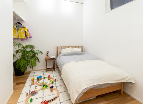 勾配天井を活かした吹き抜けのある子ども部屋